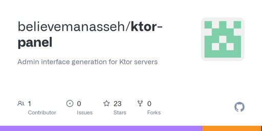 Ktor Panel is a lightweight, customisable admin interface generation library for Ktor servers. Ktor Panel provides a simple way to manage database entities through an intuitive and secure interface using minimal configuration.