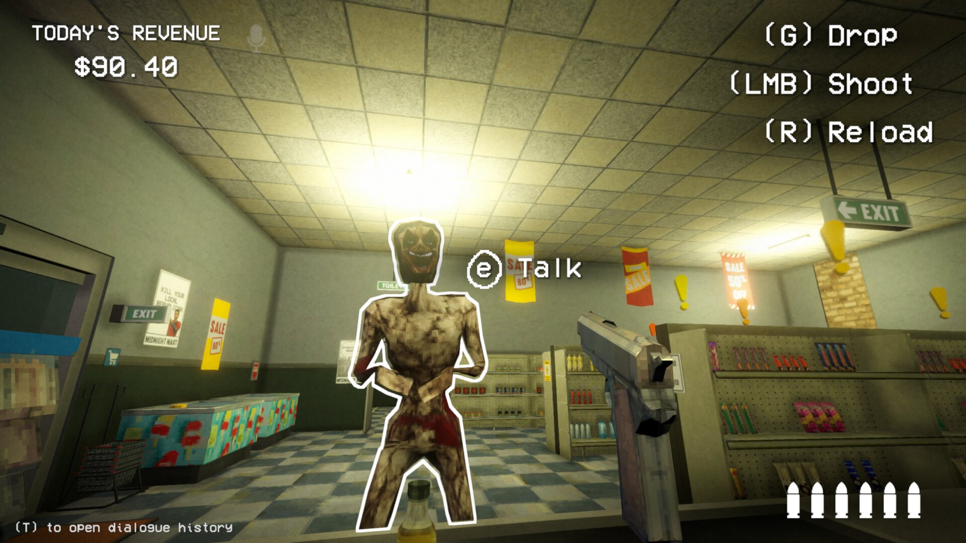 Today’s screenshot is from Shift at Midnight. The game has a Demo up on Steam now. It’s this game where you run a gas station’s graveyard shift, only the twist is that some customers are Doppleganger’s who will attack the gas station if they manage to checkout. So you have to check them and make sure they arent a double through an ID check, a mood scan, and just general questioning. If they’re a double? You pop em with the gun under the counter. Yeah, it doesn’t really make sense logically (they could just attack you in the store), but it’s still fun to play.