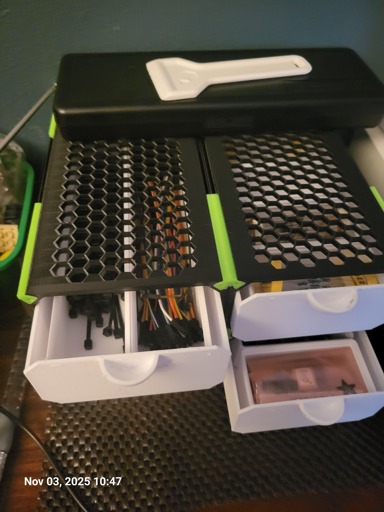 I have an ongoing project that involves a lot of shipments from digikey. In an effort to get rid of boxes I decided to get some gridfinity storage up and running.