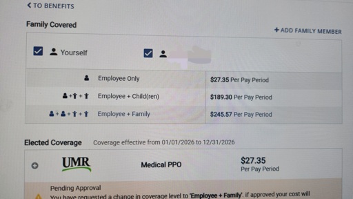 I currently pay 27 dollars twice a month for just myself. I’m looking to add my spouse to my insurance plan. If I add children it increases my premium to 190 a month, if I want my “whole family” covered it gets increased to 245 a month.