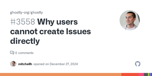 Unlike some other projects, Ghostty does not use the issue tracker for discussion or feature requests. Instead, we use GitHub discussions for that. Once a discussion reaches a point where a well-understood, actionable item is identified, it is moved to the issue tracker. This pattern makes it easier for maintainers or contributors to find issues to work on since every issue is ready to be worked on.