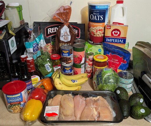 $1.99/lb chicken breast $0.33 per avocado $2.99 per Red Baron pizza $0.79 per can of tuna