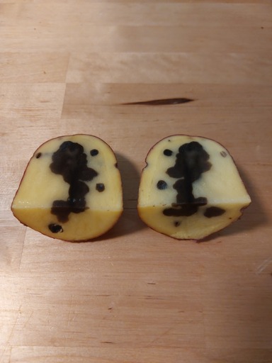Blighted potatoes look like this: