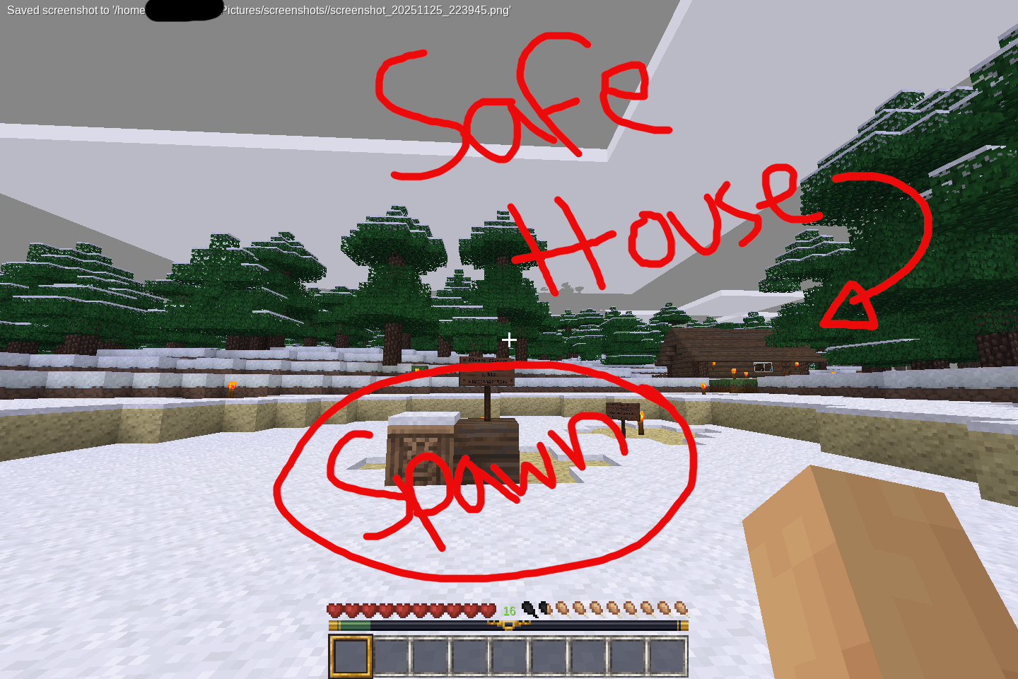 After the snow storm was over I was also able to bring in some cows and sheep they reside now behind the safe house. Please make sure theres enough cows! If you are hungry you can also go fish in the frozen lake, i put a fishing rod in the chest inside the safe house.